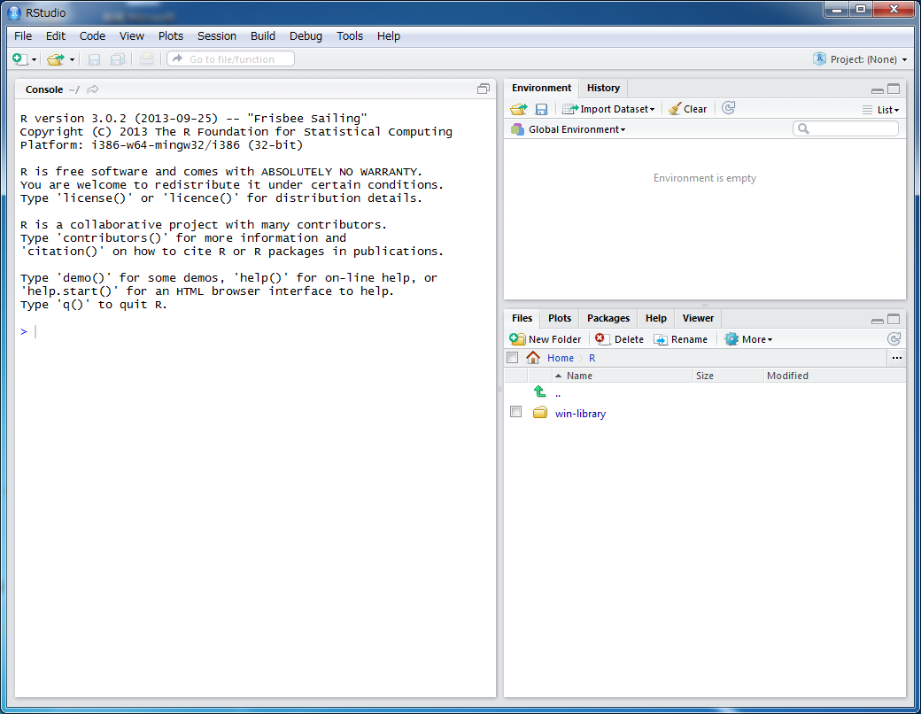 これでR Studioのインストールは完了です。IDEは結構かっこいい感じです。 あまりの簡単さに少し拍子抜けですが、今日のところはこんなところで。