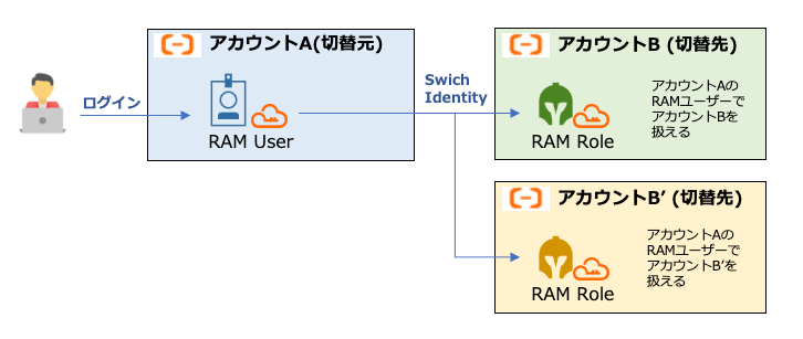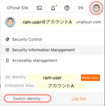 Switch Identity は、複数のアカウントを利用している際に1つのRAMユーザー で複数のアカウントを