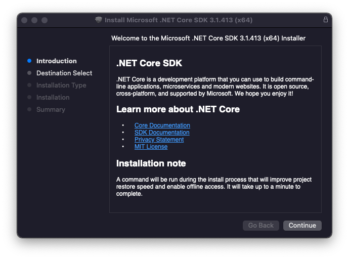 .NET Core 3.1 をダウンロードしてインストールしました。